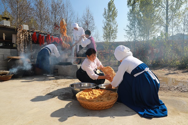 조선족특색먹거리 제작기예에는 약지짐(또는 뼈지짐, 骨饼), 느릅나무가루국수(또는 약가루국수, 榆树面), 옥수수묵(玉米粉), 깨국(苏子汤) 등 네가지 전통 음식제작 방법이 포함됐는데 우리 민족의 정성과 맛, 장인정신을 느낄 수 있다.