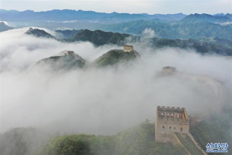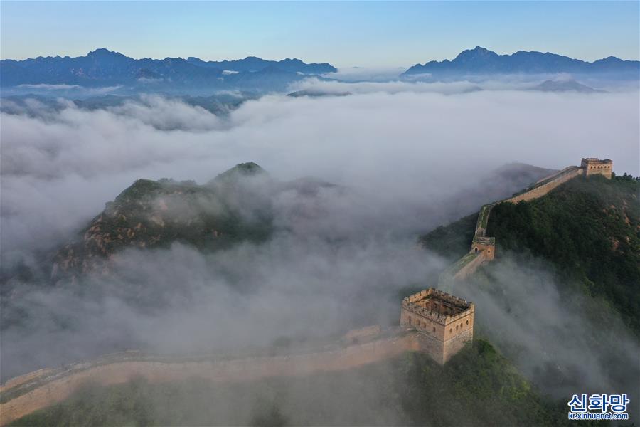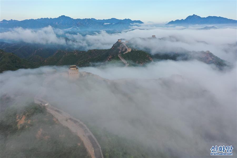 진산링(金山嶺) 장성 운무 경관(8월10일 촬영, 드론 사진)