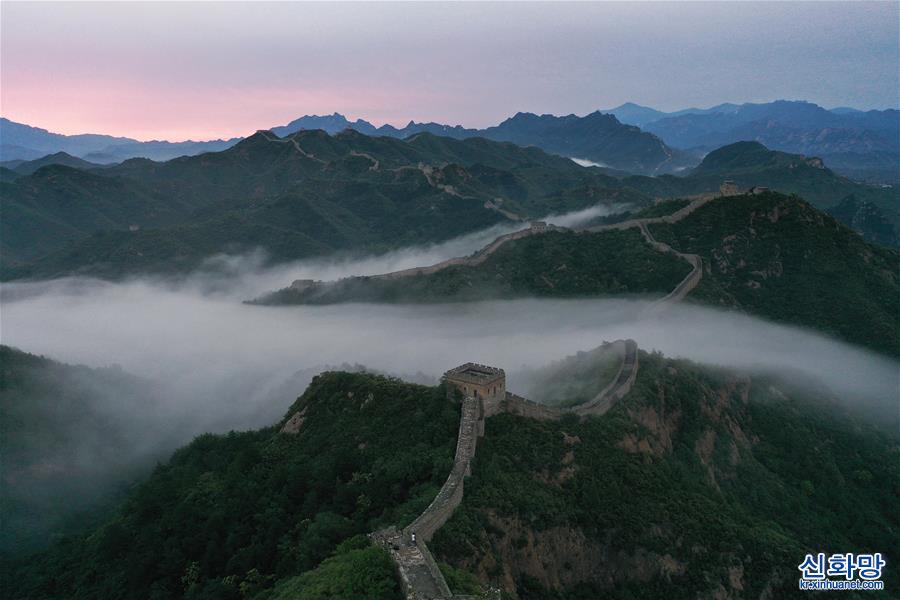 10일 새벽 허베이성 청더(承德)시 롼핑(灤平)현의 진산링 장성에 자욱한 운무가 장관을 연출하고 있다. [촬영/저우완핑(周萬平)]