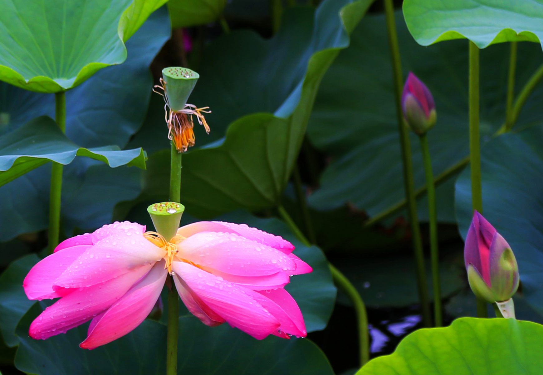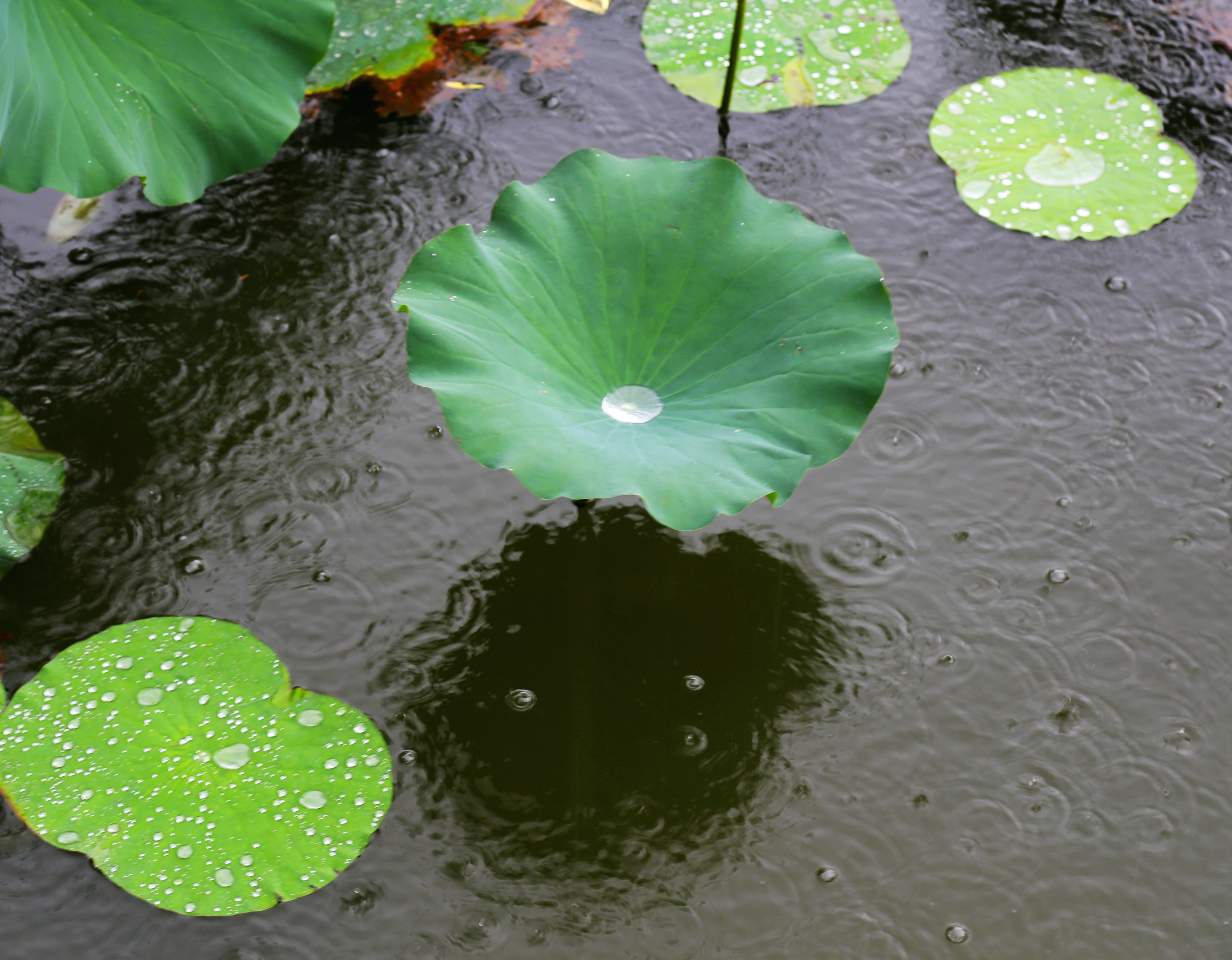한여름 맑게 개인 날에 보는 련꽃도 아름답지만, 초가을 우중상련(雨中赏莲)의 맛도 별미다.