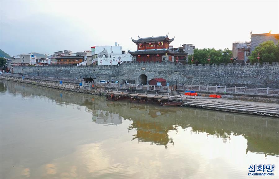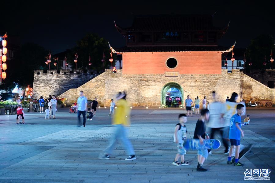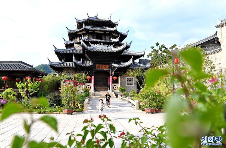 8월 20일, 어린이가 창팅(長汀)현 팅저우(汀州)진 원창거(文昌閣) 앞에서 놀고 있다. 고대 팅저우푸(汀州府)가 자리잡았던 푸젠(福建) 창팅은 유명한 국가 역사문화의 도시이다. 최근 몇 년에 들어 창팅현은 유적지 보호와 풍격 보존, 고대 운치 유지를 원칙으로 역사가 오랜 시가지와 고대 건물의 풍격을 유지해 천 년 넘는 고성에 새로운 활력을 불어넣었다. [촬영/ 신화사 기자 린산촨(林善傳)]