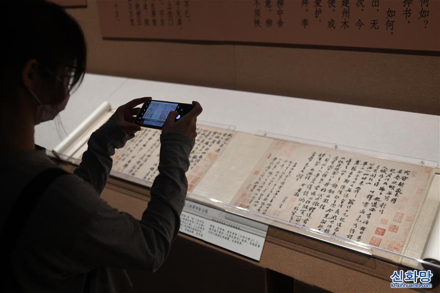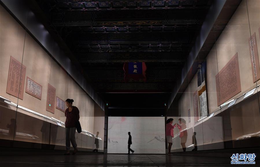 8월 31일 ‘천고의 풍류 인물—고궁박물원 소장 소식(蘇軾) 서화특별전’ 발표회에 참석한 귀빈들이 베이징 고궁박물원 문화전(文華殿)에서 전시를 관람하고 있다. ‘천고의 풍류 인물—고궁박물원 소장 소식 서화특별전’이 9월 1일에서 10월 30일까지 고궁박물원 문화전에서 개최된다.[촬영/ 신화사 기자 진량콰이(金良快)]