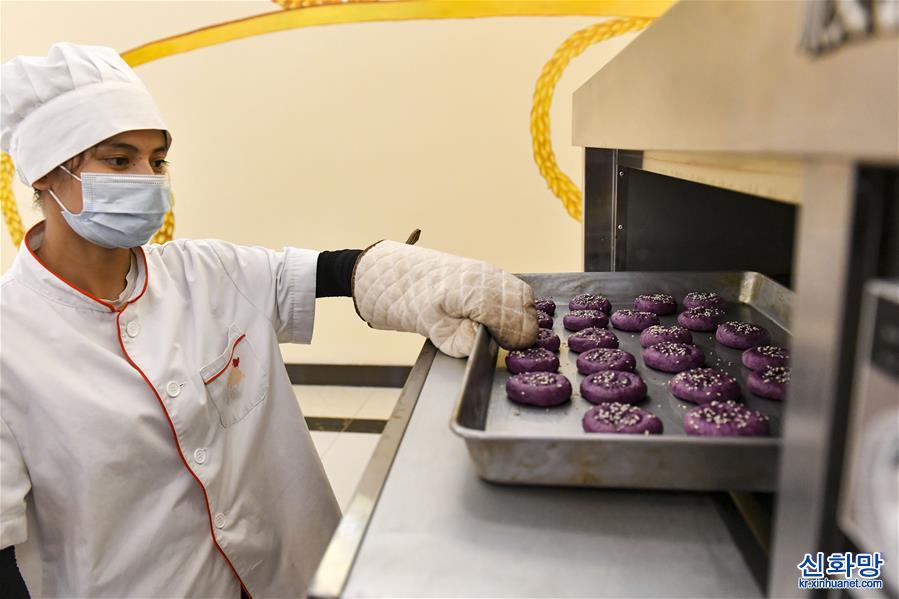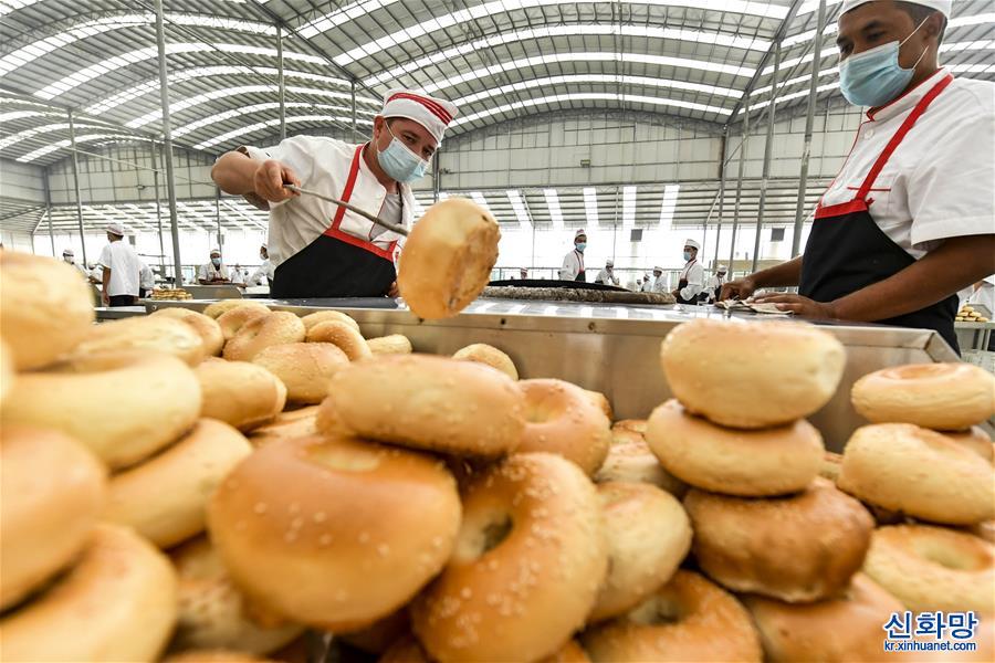 9월12일 자스(伽師)현 ‘낭(馕)’ 문화 산업단지의 직원이 온라인 주문을 처리하고 있다. 신장 카스(喀什) 지역 자스(伽師)현은 아직까지 빈곤에서 벗어나지 못한 국가급 빈곤현 중 하나다. 최근 몇 년 간 현지 정부는 대표적인 전통 먹거리인 ‘낭(馕·구운 빵)’ 산업을 대대적으로 발전시켜 현지 주민의 안정적인 취업과 빈곤탈출, 소득 증대를 돕고 있다. 현재 자스현의 낭 문화산업단지는 생산 가공, 창고 물류에서 기능 훈련, 빈곤구제 취업에 이르는 산업사슬을 형성했으며, 온라인과 오프라인 낭 판매량은 하루 평균 30만 개에 달한다. 산업단지에 취업한 현지 주민