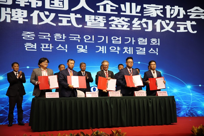 행사에서 시범구관리위원회와 중국한국인회총련합회는 경제무역의 교류와 합작을 강화하고 각자의 자원우세를 발휘하여 시범구 한국산업단지의 투자유치사업을 공동 추진하기 위해 전략적 합작협의를 체결했다. 또한 하남탁립(卓立)막재료유한주식회사, 연안(대련)텐트유한회사, 위해안여태(安如泰)전자상거래유한회사, 신지회(료녕)인터넷비즈니스유한회사 등 4개 한국기업은 중국한국인회총련합회와 한국산업단지 입주협의를 체결해 심무개혁혁신시범구 한국산업단지에 입주한 첫패의 한국기업으로 이름을 올렸다. 중국한국인기업가협회 현판식도 진행됐다.