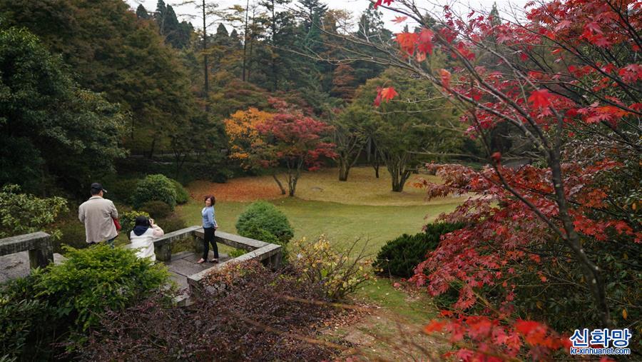루산(廬山) 관광지는 장시성 주장(九江)시에 있다. 운무가 자욱한 가운데 가을빛으로 곱게 물든 루산 관광지에 최근 많은 관광객들이 와서 가을 경치를 감상하고 있다.[촬영/후천환(胡晨歡)]