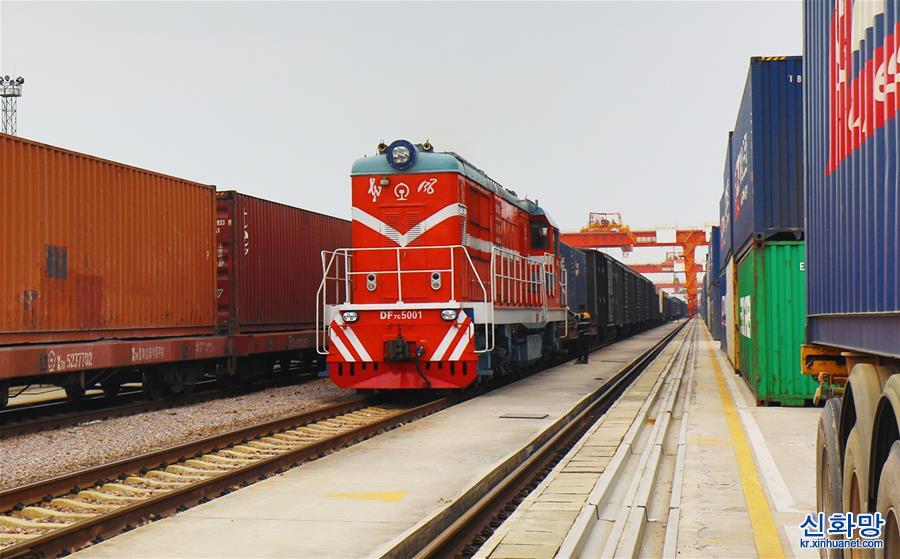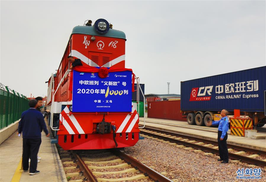 10월 21일 오후, 2020년 1,000번째 ‘이신어우(義新歐, 이우(義烏)-신장(新疆)-유럽)’ 화물열차가 이우 서역에서 출발했다. 2020년 1,000번째 ‘이신어우’ 중국-유럽 화물열차가 이날 이우 서역에서 출발해 벨로루시 수도 민스크로 향했다. [촬영/ 궁셴밍(龔獻明)]