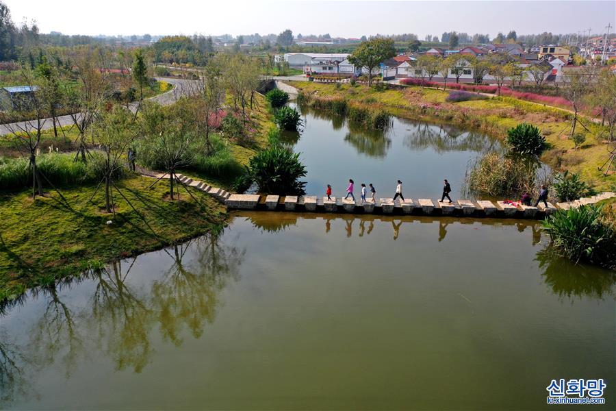 10월25일, 유람객들이 산둥성 칭다오시 지모(即墨)구 룽취안(龍泉) 가도 앞 녠쯔터우(碾子頭)촌 경관 강에서 노닐고 있다. (드론 사진) 산둥성 칭다오시 지모구 룽취안 가도는 살기 좋고 사업하기 좋고 관광하기 좋은 현대 아름다운 농촌 건설에 주력해 문화, 생태, 농업과 농촌진흥의 융합 발전을 추진하고 있다. 지역의 상황에 맞게 관할구 61개 마을 맞춤형 아름다운 농촌 방안(‘1촌 1특색, 1촌 1테마’)을 마련하고, 특색 관광 경관, 민가 환경 개조, 수자원 보호, 정원 녹화 및 조명을 통한 야경 조성 프로젝트 건설을 진행해 주민들의 행복감과 성취감을 높일 뿐만 아니라 현지 농민의 소득을 증대시키고 있다.[촬영/량샤오펑(梁孝鵬)]