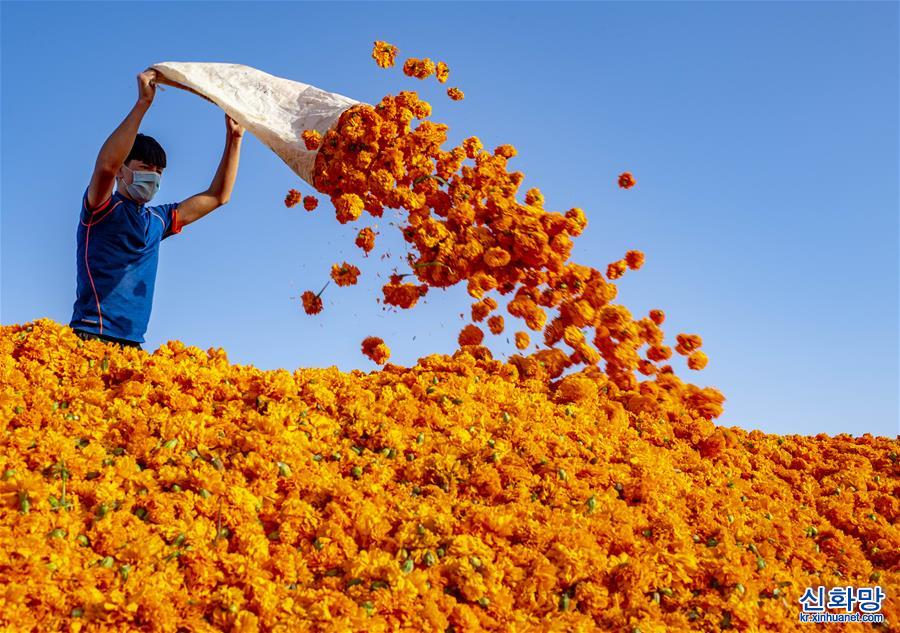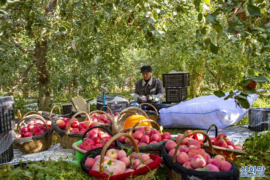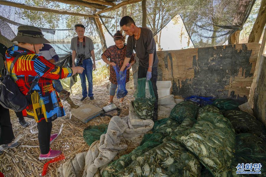 신장 위리(尉犁)현에 있는 사막 호수 뤄부포(羅布湖)에서 어민이 게를 잡고 있다. (9월16일 촬영) 여름과 가을, 신장의 광활한 토지에서 식량과 과일이 풍작을 이루면서 농민들이 수확으로 분주하다. [촬영/신화사 기자 자오거(趙戈)]
