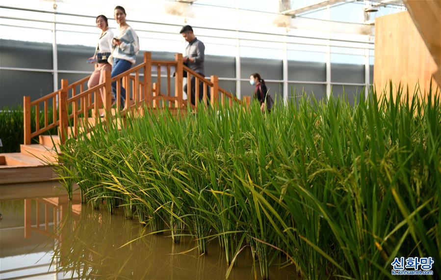 10000m2에 시설농업과 입체재배, 겉곡식 전시, 생산, 연구 등 5개 구역으로 나눠진 ‘스마트팜’은 양질의 효율적이고 지속가능한 발전이 결합된 도시 관광형 현대 농업의 길을 개척해 농촌 진흥을 돕고 있다.[촬영/쉬젠위안(許建園)]