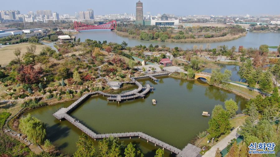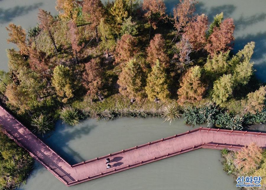 초겨울, 장쑤성 양저우시 운하 싼완(三灣) 생태문화공원이 한 폭의 그림 같은 풍경을 연출하면서 많은 시민과 관광객들이 와서 휴식을 취하거나 관광을 하고 있다. [촬영/신화사 기자 지춘펑(季春鹏)]
