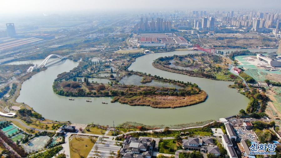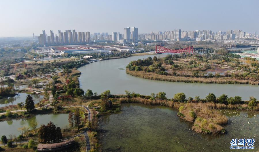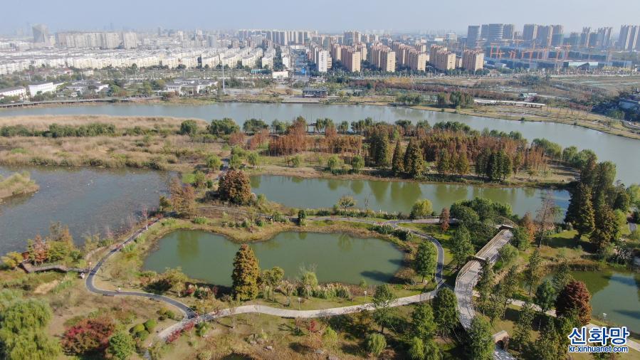 운하 싼완(三灣) 생태 문화공원 경치(11월14일 촬영, 드론 사진)