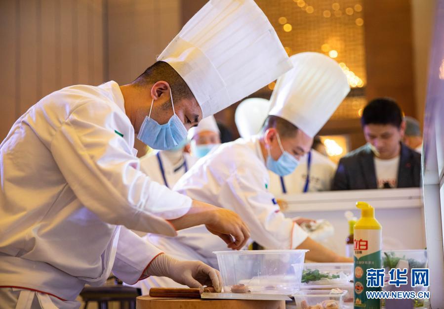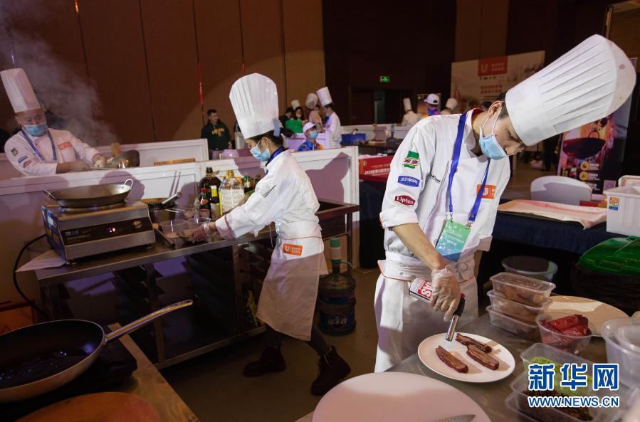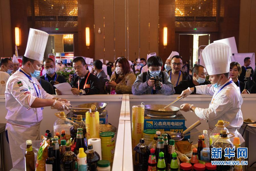 11월 16일, 세계중식업련합회에서 주관한 '2020세계사천료리기능대회'가 사천성 매산시 흑룡담 장도인터컨티넨탈호텔에서 개최되였다. 전국 각지에서 온 60명의 사천료리 유명료리사들이 같은 무대에 올라 경쟁을 펼쳤는데 경기는 국제중식료리경연의 표준을 적용해 현재 사천료리의 최신 류행추세와 료리수준을 보여줬다(신화사 기자 강굉경 촬영).