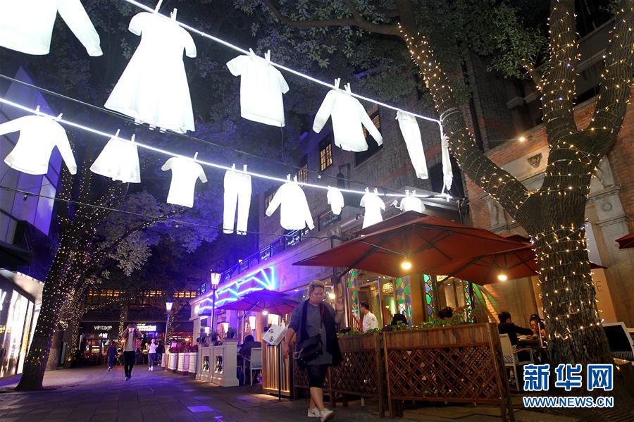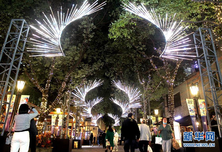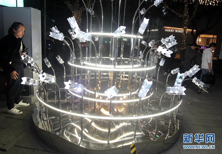 11월 16일, ‘빛의 날개’를 주제로 한 등불축제가 상해 신천지에서 상연되였다. 당일, ‘2020조명상해’ 등불예술절이 상해신천지에서 개막했다. 국내외 예술기구에서 설계하고 제작한 일련의 조명예술장치가 모습을 드러내 야간경제에 조력했다(신화사 기자 진비 촬영).