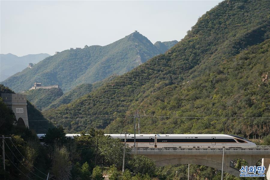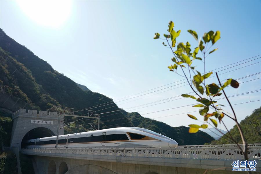 푸싱호 고속열차가 베이징-장자커우 고속철도 쥐융관(居庸關) 터널을 지나가고 있다. (10월6일 촬영) 100여년 전 베이징-장자커우 철도는 중국인이 스스로 철도를 건설할 수 없다는 단언을 깼다. 2019년 중국 첫 스마트 고속철도인 베이징-장자커우 고속철도가 개통되면서 중국 철도는 중국이 철도 건설 낙후국에서 선도국으로 발돋움했음을 입증했다. 베이징-장자커우 철도는 지역 협동 발전을 위해 새로운 다리를 놓았다. 베이징-장자커우 고속철도는 2022년 베이징 동계올림픽의 개최지인 베이징과 장자커우를 연결하며, 주변 여러 지역의 경제와 관광 발전을 이끌고, 베이징-톈진-허베이 협동 발전을 위해 새로운 동력을 불어넣고 있다.[촬영/신화사 기자 쥐환쭝(鞠煥宗)]