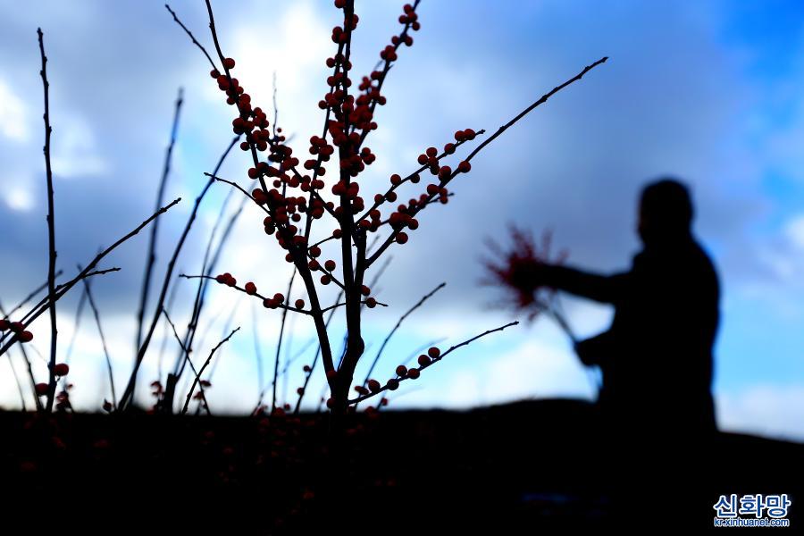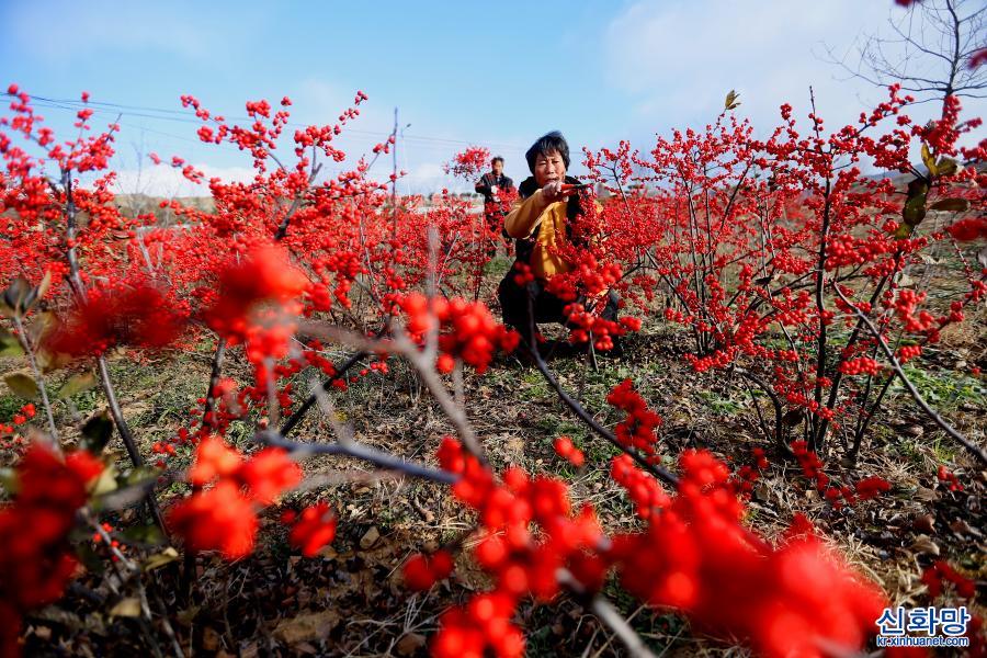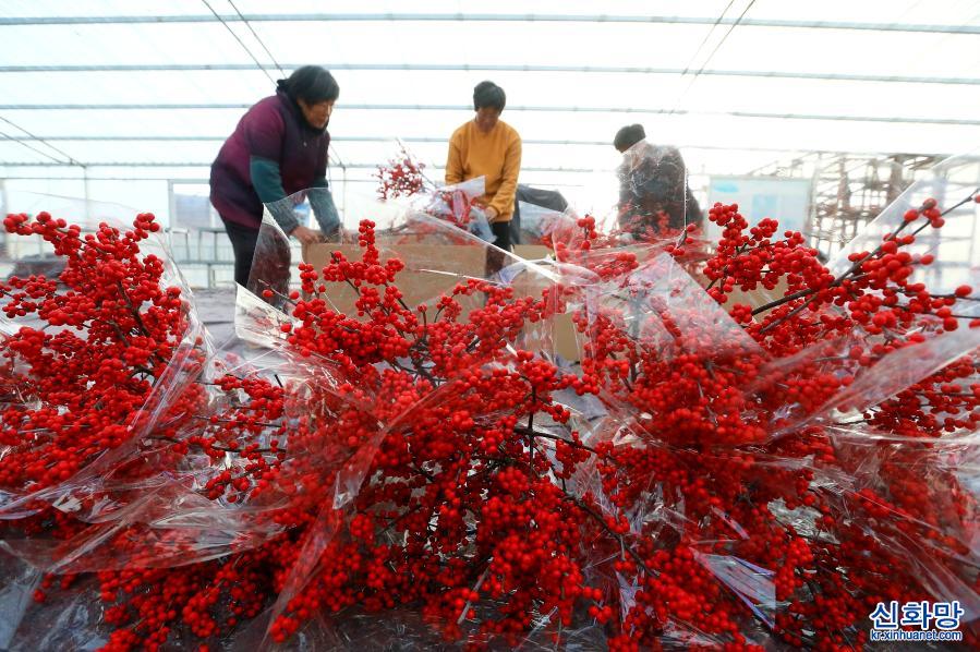 12월14일, 산둥성 칭다오시 지모(即墨)구 톈헝(田橫)진 푸타이링촌 주민이 ‘크리스마스 치어’를 가공하고 있다. 산둥성 칭다오시 지모(即墨)구 톈헝(田橫)진 푸타이링촌 농민이 재배한 빨간 미국낙상홍 열매가 가공 및 판매 성수기를 맞았다. 최근 몇년간 현지는 ‘당지부+합작사+농가’의 경영 관리모델을 채택해 농민이 산업구조 조정을 진행하고 관상성이 뛰어난 미국낙상홍 재배를 발전시키도록 인도하는 한편 농가에 재배기술과 전자상거래 판매 지도를 제공해 농민의 소득증대를 이끌고 있다.[촬영/량샤오펑(梁孝鵬)]