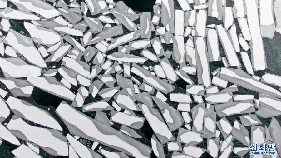눈이 온 후 눈과 얼음으로 뒤덮인 칭하이호는 마치 동화 나라 같다. 눈과 얼음으로 덮인 호수가 마치 옥대 파편이 흩어져 있는 듯한 독특한 경관을 연출하고 있다.[촬영/신화사 기자 장훙샹(張宏祥)]