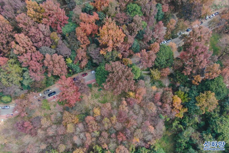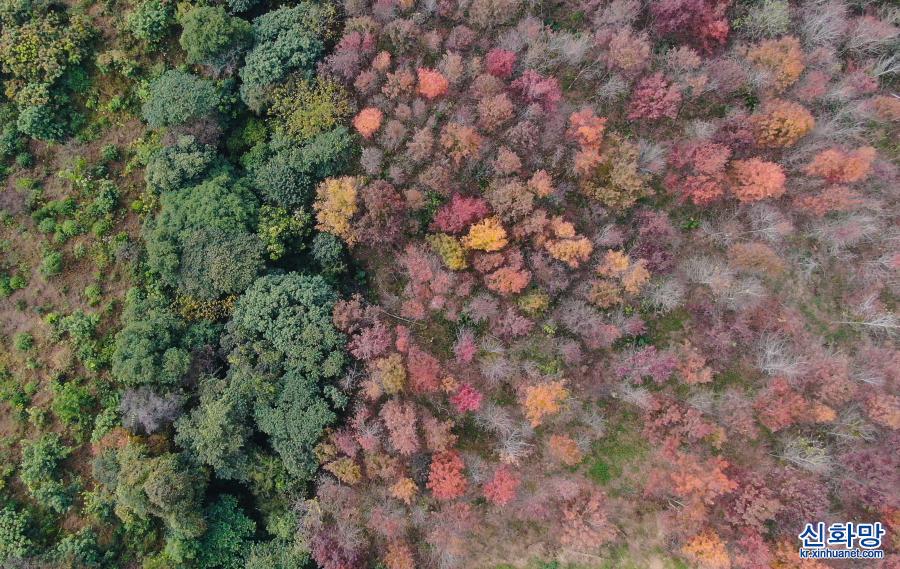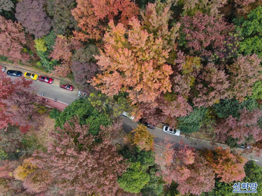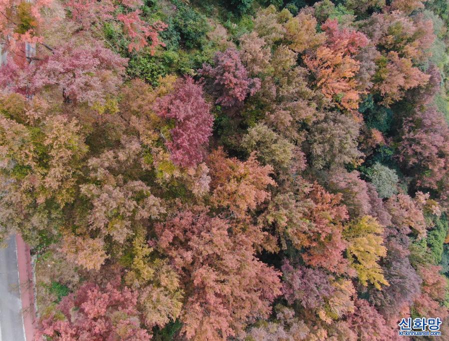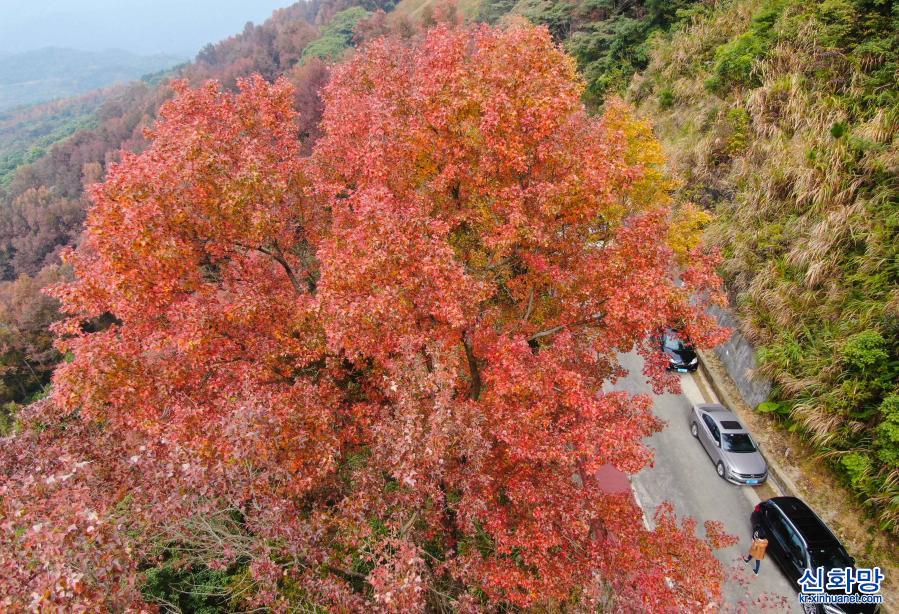 12월26일 촬영한 광저우 스먼(石門) 국가산림공원 풍경(드론 사진) 기온이 낮아짐에 따라 광저우 충화(從化)구에 있는 스먼(石門) 국가산림공원 안은 단풍나무와 오구나무 등이 절정을 이루면서 구경할 수 있는 최적의 시기에 들어갔다. 울긋불긋 물든 나무들이 시적인 정취가 묻어나는 그림 같은 경치를 연출하고 있다. [촬영/신화사 기자 덩화(鄧華)]