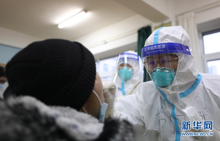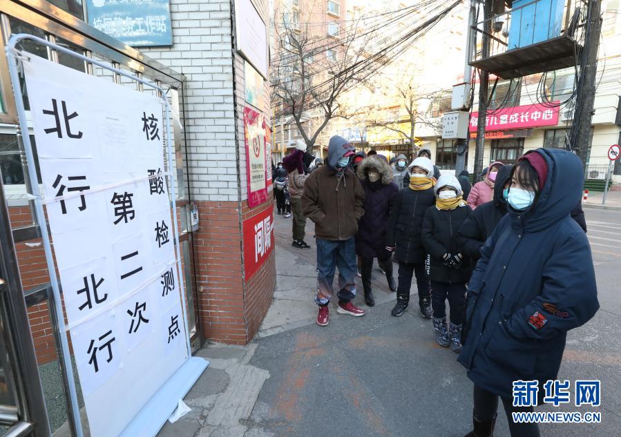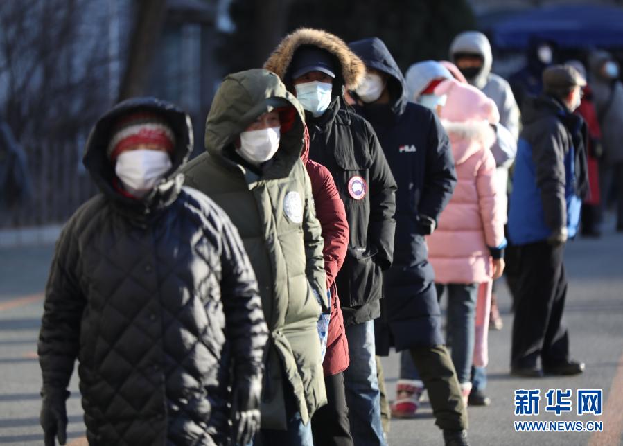 심양시 신종코로나페염 전염병예방통제와 경제사회발전 총괄추진 사업지휘부는 1월 4일부터 철서구, 황고구, 우홍구에 대해 제2차 전원 핵산검사를 전개했다. 이번 전원 핵산검사는 인원 배제조사등록, 정보입력, 샘플채취검사 등 사업을 총괄적으로 잘하여 조직적이고 질서 있게 진행해 한 사람도 빠뜨리지 않도록 확보할 것이라고 한다. 이번 검사비용은 정부에서 담당한다(신화사 기자 양청 촬영).