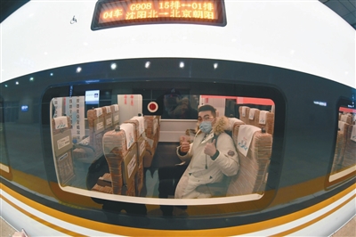 22일 8시 30분, 기자는 승객들과 함께 북경으로 향하는 첫차에 올랐다. 객실의 좌우 량측에는 모두 붉은색의 플래카드가 걸려있었다. “아침은 심양에서 두유를 마시고 점심은 수도에서 오리구이를 먹자”, “속도로 거리를 좁히고 고속철로 생활을 개변하자”... 승무원들은 각종 선전표어를 들고 첫차에 함께 탑승한 승객들과 기념사진을 남겼다.