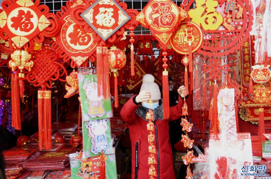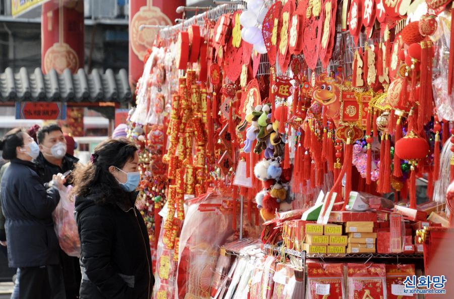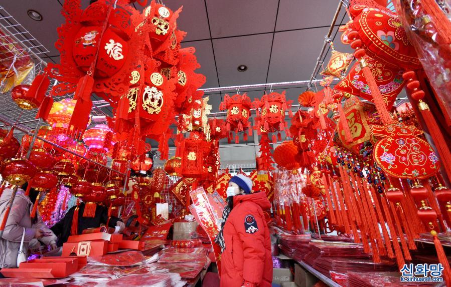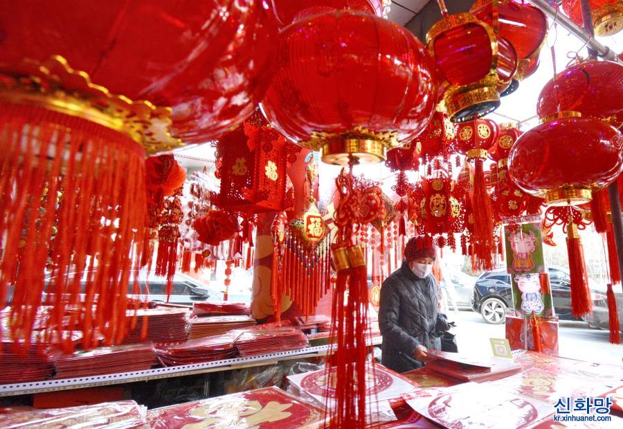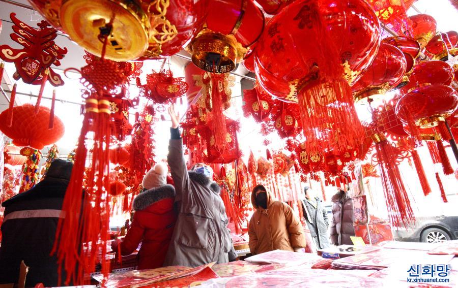 중국 최대 명절 춘제(春節)를 앞두고 베이징 시민들이 설을 쇨 준비를 하기 위해 등롱, 춘련(春聯), 세화(年畫) 등 장식품을 구매하고 있다. [촬영/신화사 기자 리신(李欣)]