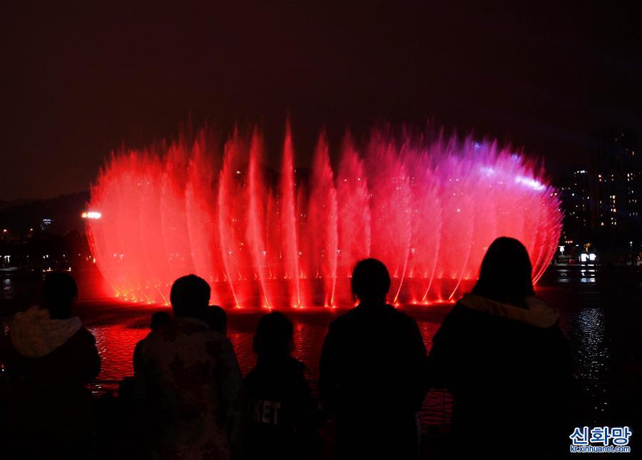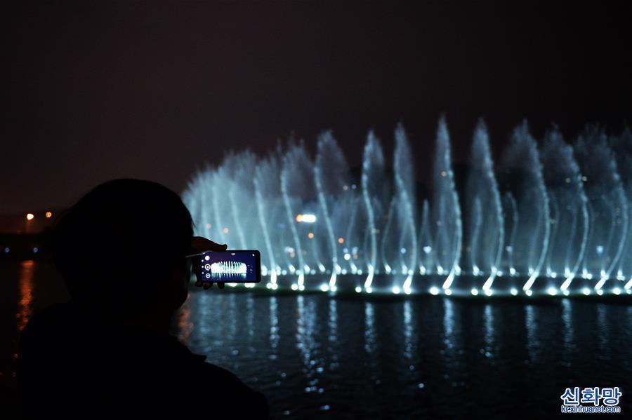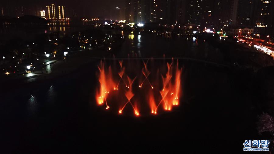 후난성 창사(長沙)시에 위치한 메이시후(梅溪湖) 음악분수가 보수 후 재개방했다. 많은 시민들이 가던 발걸음을 멈추고 분수가 조명과 어우러지면서 각양각색의 물기둥으로 변해 음악에 따라 경쾌하게 율동하는 모습을 감상했다. [촬영/신화사 기자 천전하이(陳振海)]