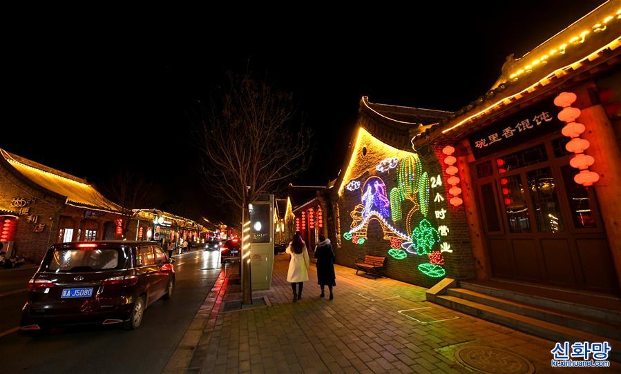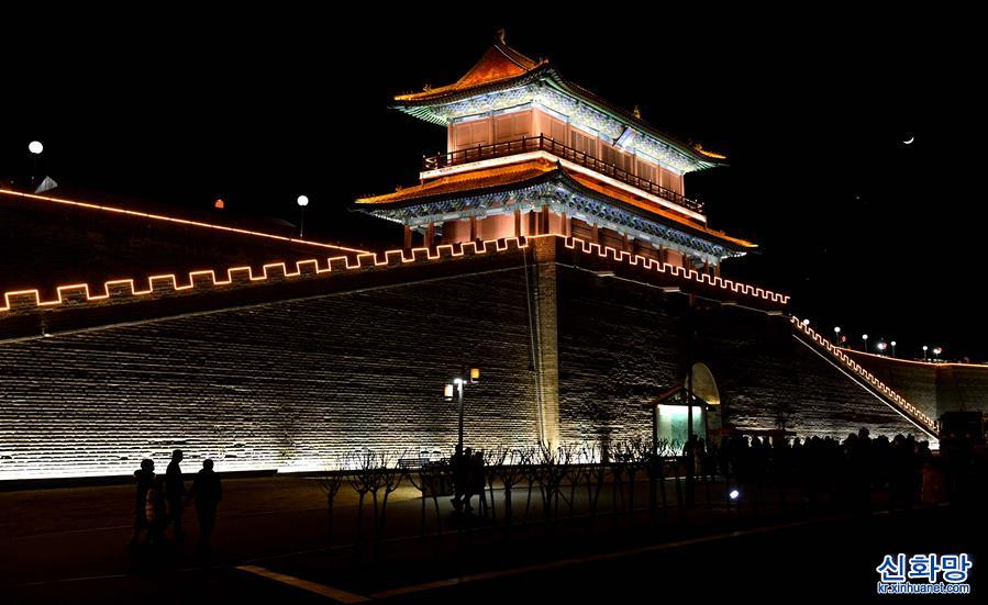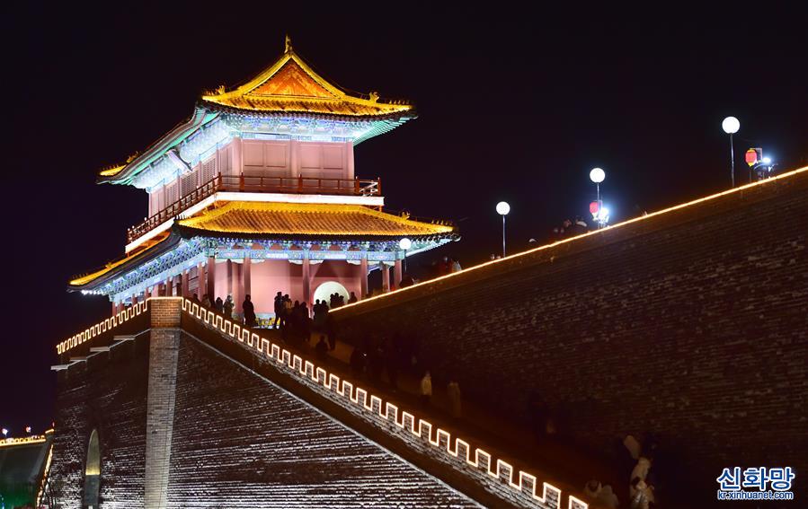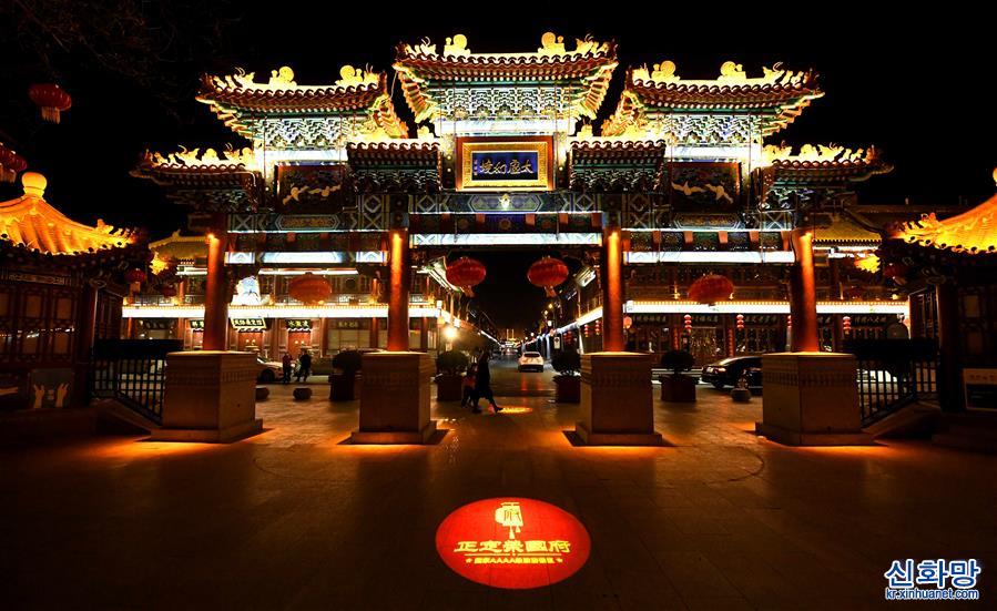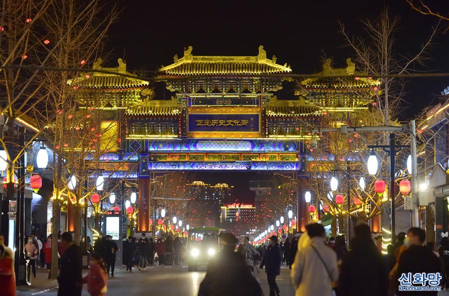 2월16일 저녁 스자좡시 정딩고성(正定古城)에서 시민들이 야경을 구경하고 있다. 춘제 연휴 기간 허베이성 스자좡시의 정딩고성(正定古城)을 찾은 시민들은 고성의 매혹적인 야경을 감상하며 설 분위기를 만끽했다.[촬영/천치바오(陳其保)]