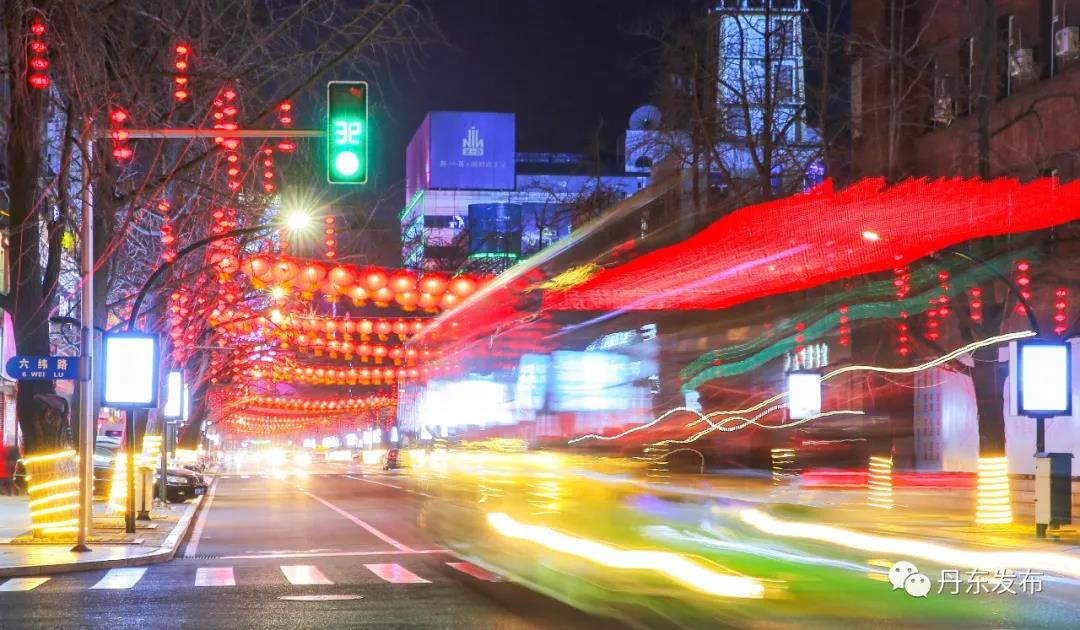▲원보산(元宝山)공원 광장에서 대형 네온사인이 상서롭고 화목한 명절분위기를 안겨준다.