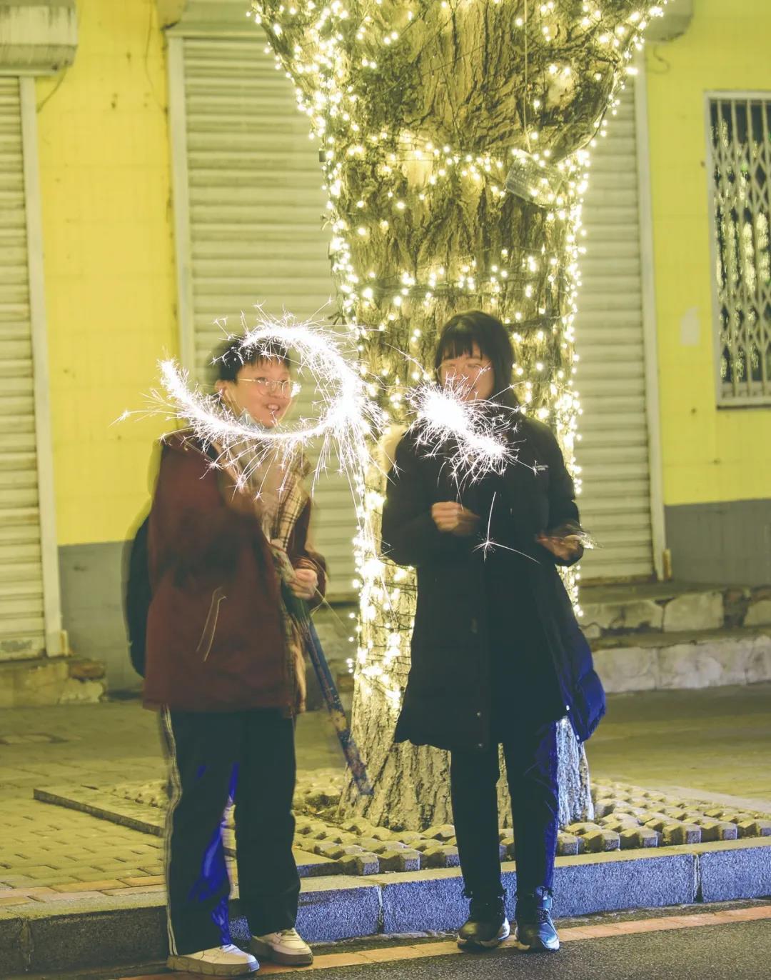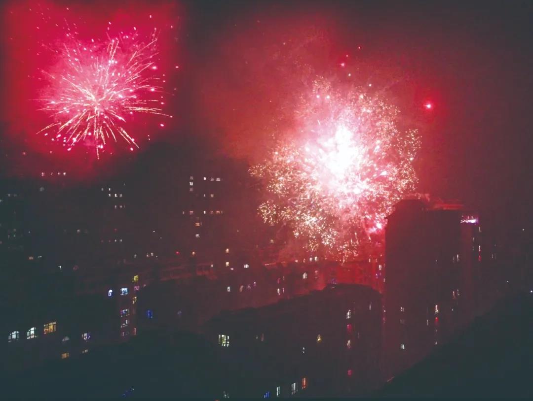 2월 11일 음력 섣달 그믐날, 저녁을 먹은 시민들이 원보산공원에서 기념사진을 찍으며 새해를 맞이했다.
