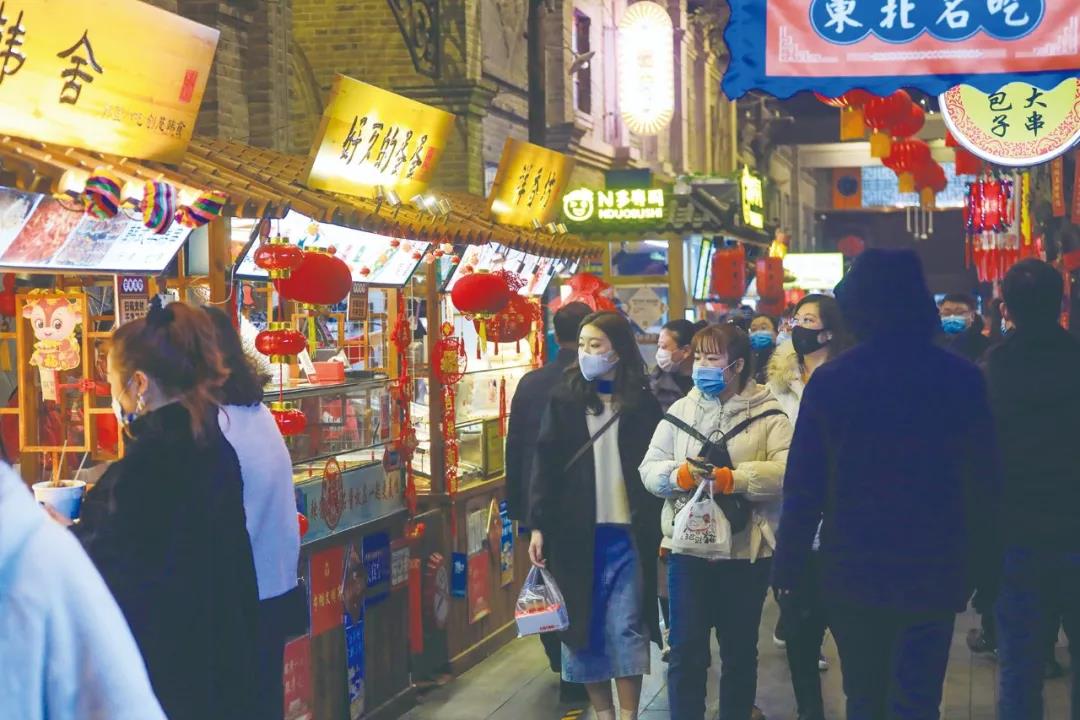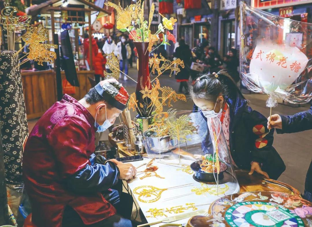 음력설기간 단동시는 거리 곳곳마다 설분위기가 짙었는데 꽃등, 미식, 민속 수공업 제품은 사람들에게 새해 축복을 주었다.