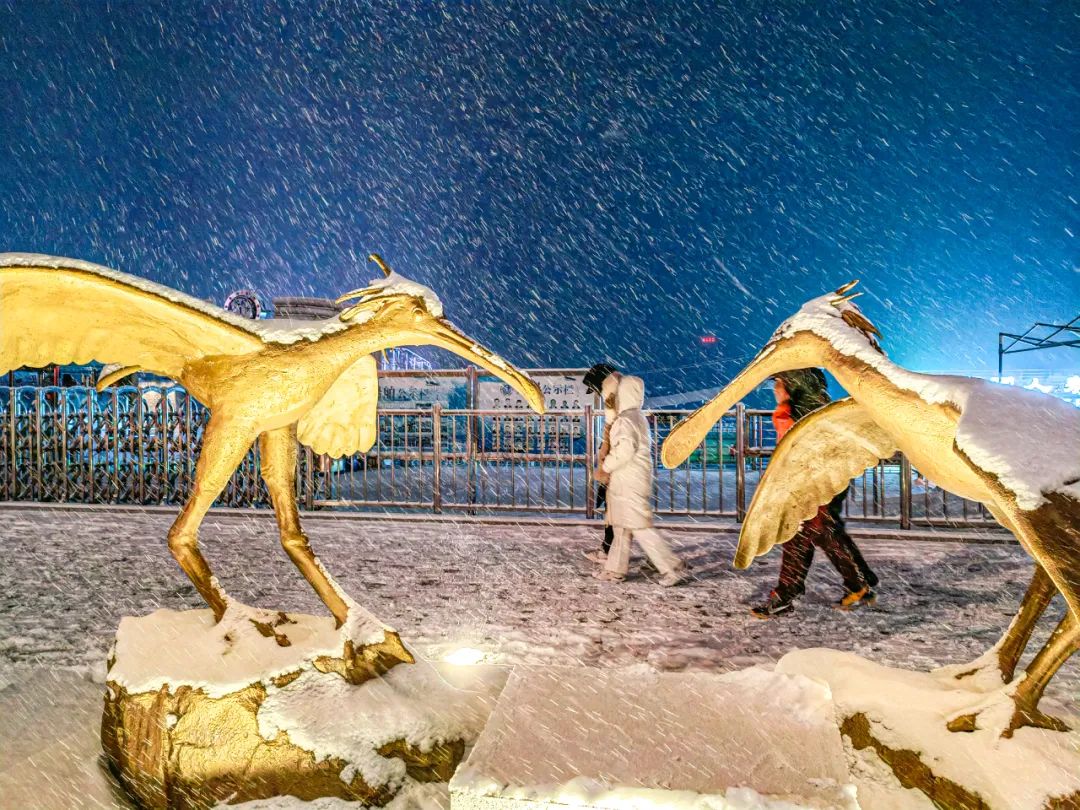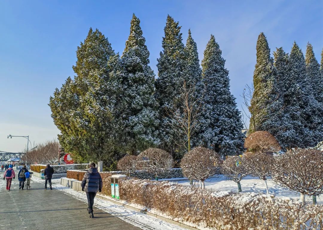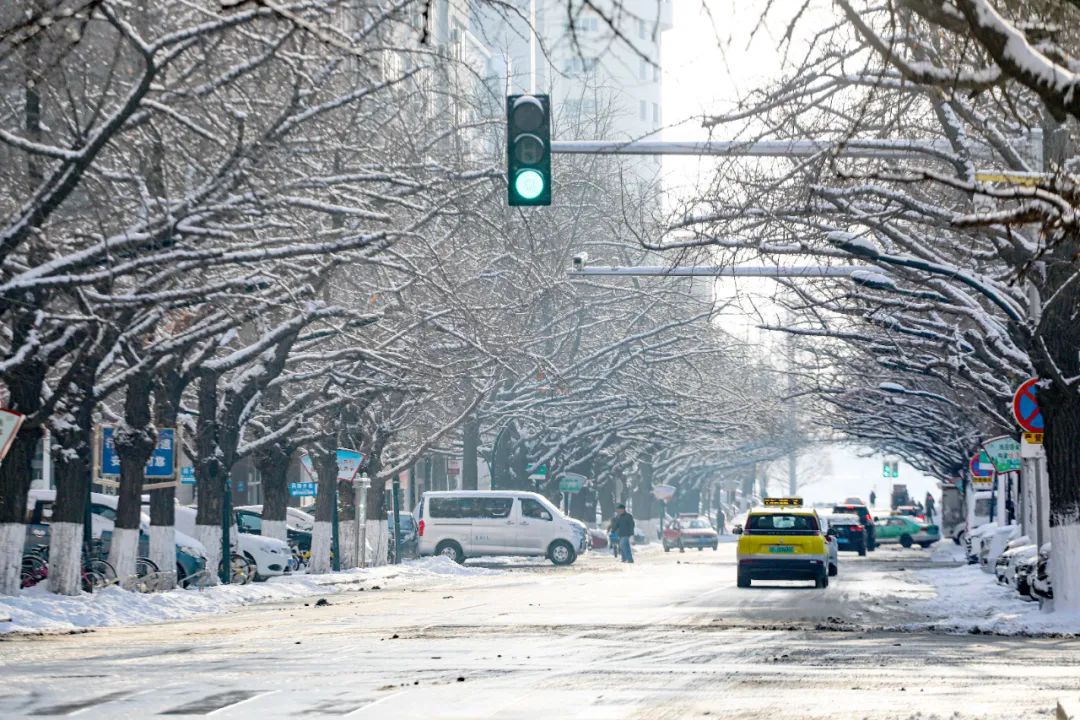 雪花从天而降,纷纷扬扬,城市被包裹上了一身“银装”,美景如画。