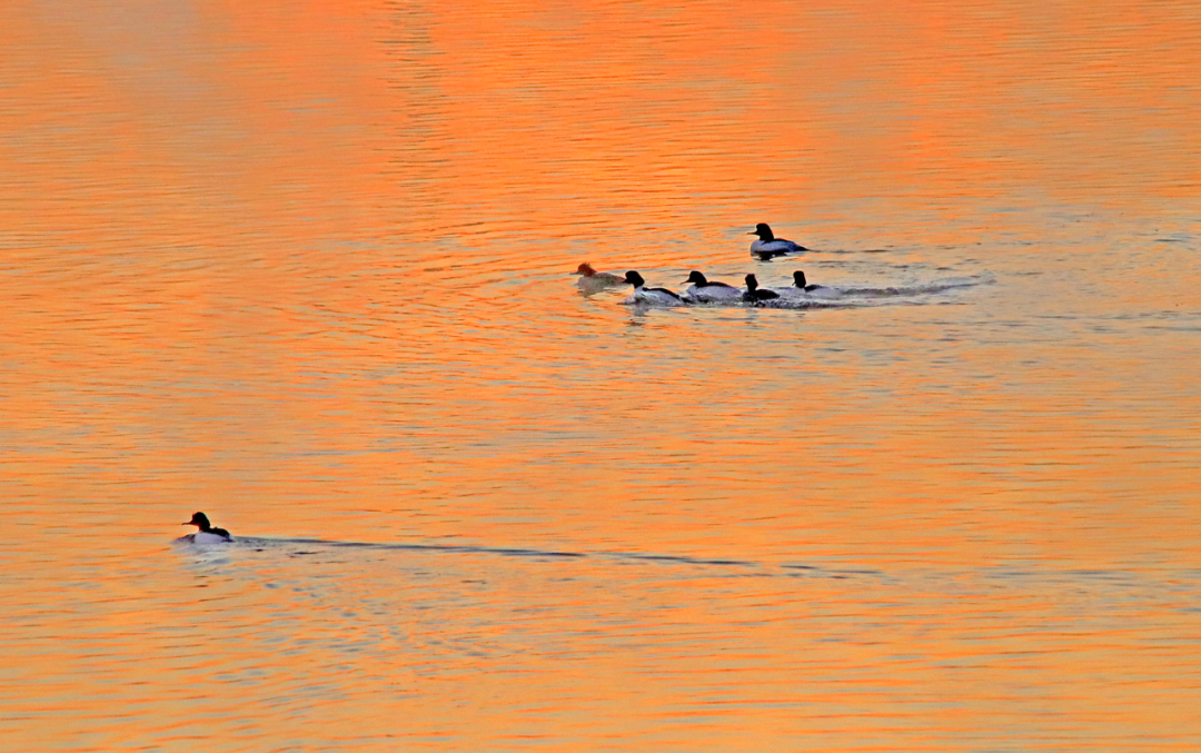 近日,摄影家在鸭绿江市区段沿线拍摄到了数量众多的绿头鸭、斑嘴鸭、鹊鸭、绿翅鸭、普通秋沙鸭、红头潜鸭等野鸭种类。运气好的话,还可以发现世界极危物种青头潜鸭和濒危物种中华秋沙鸭。
