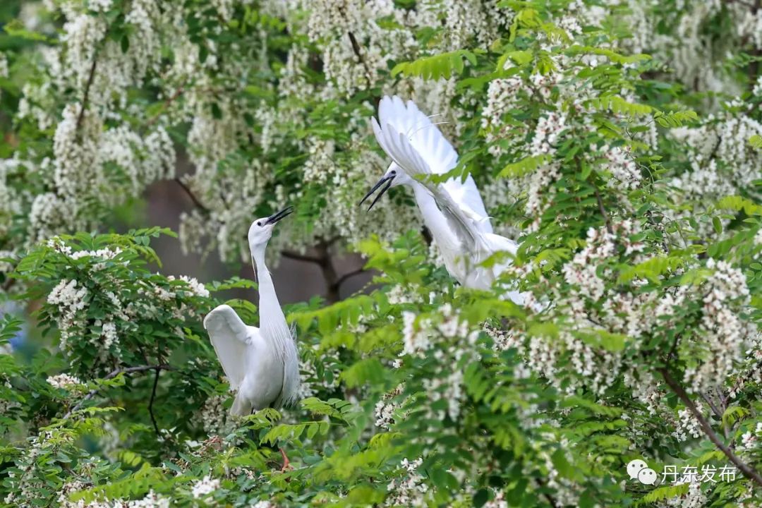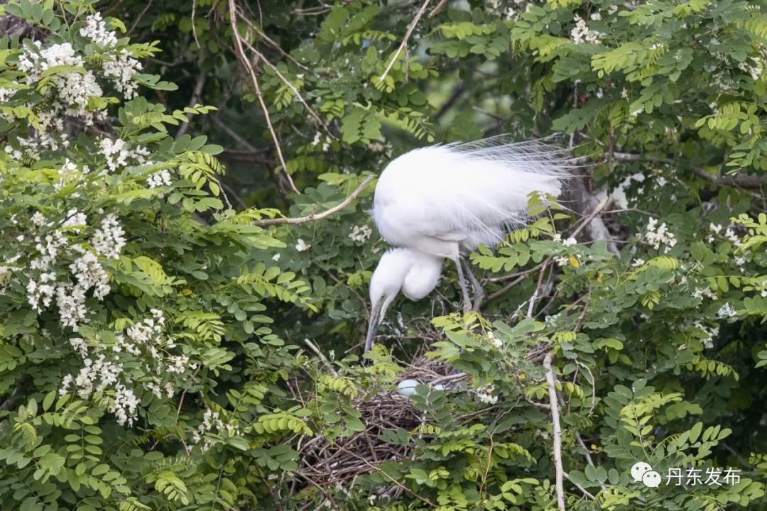 在丹东新区吉祥家园小区一处山坡上,栖息着数百只白鹭、苍鹭、夜鹭、池鹭等鹭鸟。