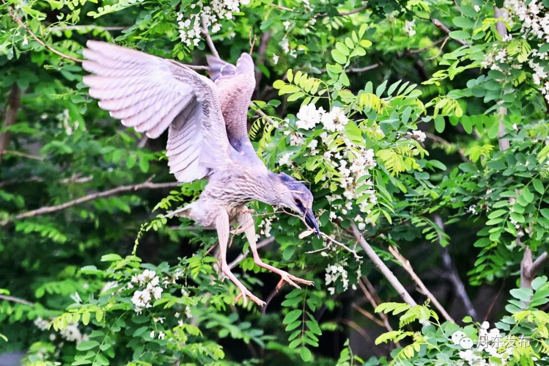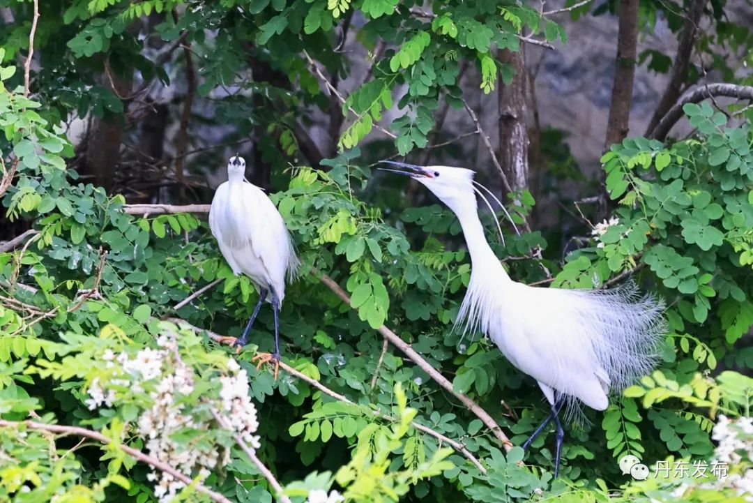 进入六月,各种鹭鸟幼仔陆续出生。鹭鸟父母忙碌起来,早晨出巢觅食、哺育,晚间归巢栖息。