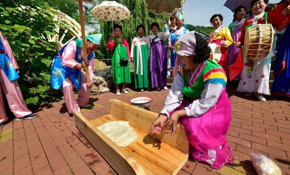 打糕,是丹东人特别喜欢的一种美食,先将粘米淘净蒸熟,放在打糕槽内或石板上,用打糕槌子把米粒打碎粘合在一块制成。吃的时候,用刀蘸水切割成小块,蘸着白糖、豆面吃;还可以包入不同的馅料吃。总之吃法很多。因为它口感黏糯劲道,味道香甜,还有保健功能特别受大众喜爱。朝鲜族历来把打糕当作上等美味,每逢年节或婚姻佳日及接待贵宾时,都要做打糕。打糕的历史比较长,早在18世纪朝鲜族的有关文献中已有记载,当时称打糕为“引绝饼”,并称引绝饼已成为传统食品之一。