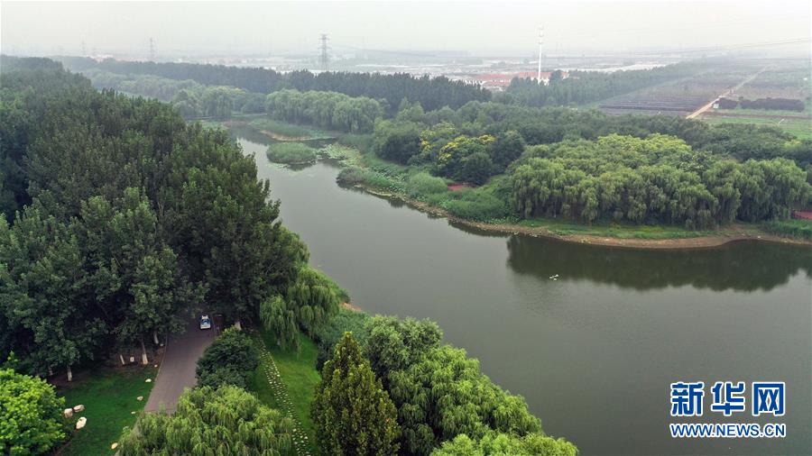 7月31日拍摄的天津市武清区永定河故道国家级湿地公园景色(无人机照片)。 武清永定河故道国家级湿地公园位于天津市武清区,于2019年12月通过国家林业和草原局验收,正式成为国家湿地公园。近年来,天津市武清区对湿地进行保护恢复,同时固化森林植被,改善生态景观,呈现出“城水相依,人水相亲”的景象。 新华社记者 马平 摄