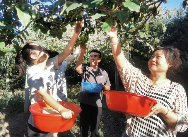 种植户将采收的软枣猕猴桃