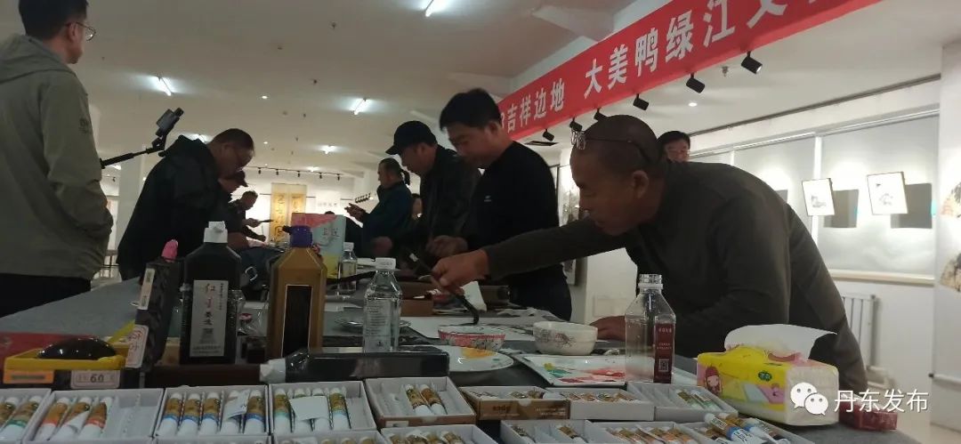 10月19日,“吉祥边地•大美鸭绿江”丹东、通化、白山三市地域文化主题艺术展在丹东边民互市贸易区鸭绿江画院美术馆开展。