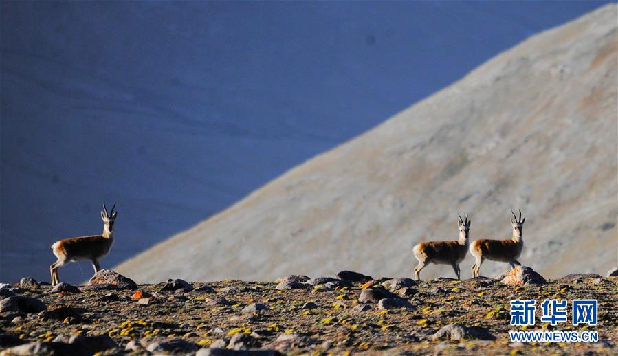 在哈尔腾草原上觅食的国家二级保护动物藏原羚(8月8日摄)。 八月,地处祁连山西端的甘肃省酒泉市阿克塞哈萨克族自治县哈尔腾草原色彩斑斓,野生动物自在觅食,给高原增添了一道亮丽风景。 新华社发(马晓伟 摄)