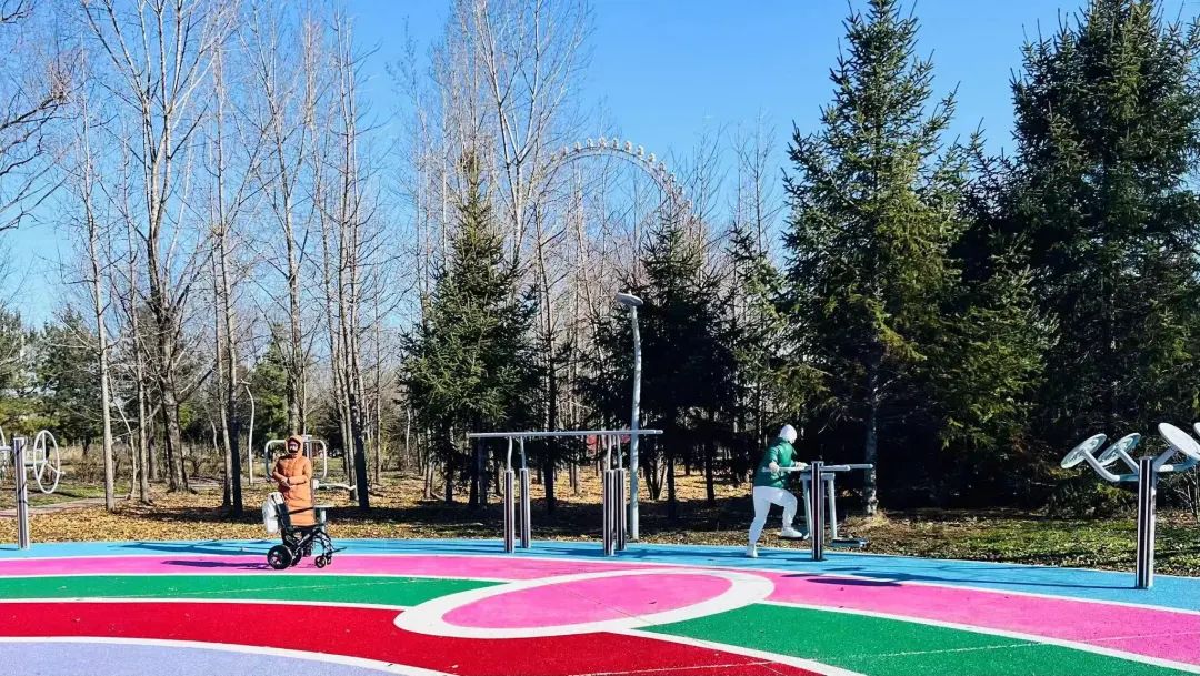 不仅仅是鸟儿无惧寒冬,寒意同样不能阻挡市民逛公园的脚步。环顾改造后的国门湾公园,有人推着婴儿车在公园里漫步,有人在健身器材上运动正酣。“公园改造后,增加了专门的运动场地,你看地上这些彩色塑胶,被设计成各种不同的图案,看上去赏心悦目。”走进新建的滑板场地,市民于海涛骄傲地告诉记者,这块场地是在他的建议下建成的。