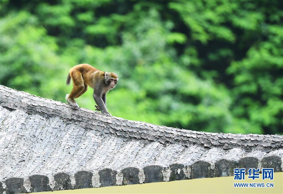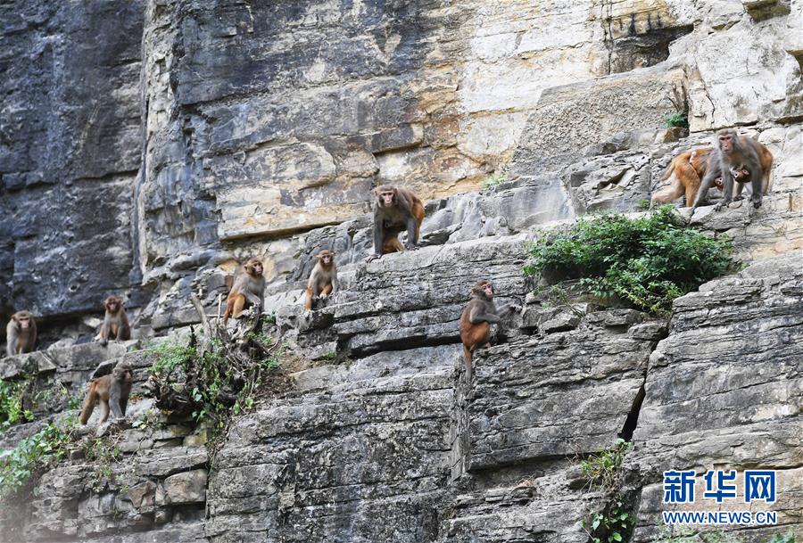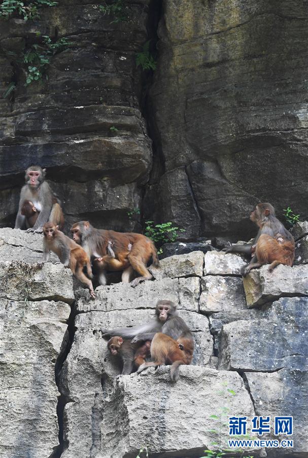 这是8月11日拍摄的温塘河岸边的野生猕猴。 近年来,位于重庆市渝北区统景镇的温塘河两岸植被不断优化,生态环境持续改善,吸引越来越多的野生猕猴聚集于此。 新华社记者王全超摄