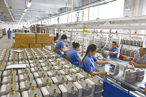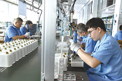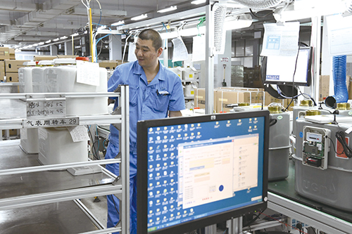 8月11日,位于丹东市边境经济合作区江湾工业园区辽宁思凯科技股份有限公司生产车间,工人们正在为北京燃气集团赶制物联网燃气表。思凯公司作为北京燃气集团的主要供应商,在今年伊始与北京燃气集团签订了15万块物联网燃气表的供货合同。目前公司各生产线全部开通运转,全体员工通力合作,确保按时完成生产任务。