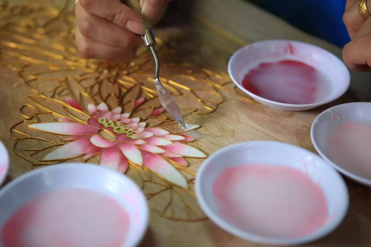 凤城晶涛景泰蓝珀晶画又名珐琅珀晶画,系景泰蓝第三代工艺产品,它是在继承和发扬了景泰蓝原有工艺特点,吸收欧美及伊斯兰文化精华的基础上,采用纯手工技术进行制胎、绘图、掐丝、沾丝、点蓝、烘干、磨砂、抛光、装裱制作的一种传统手工艺品。此种工艺在丹东传承已有150余年。