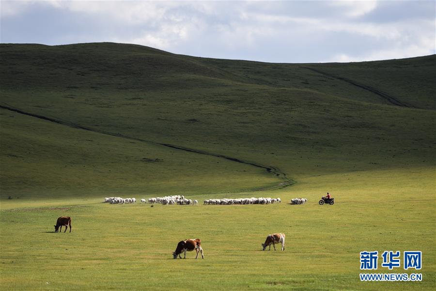 牧民在克什克腾旗贡格尔草原放牧(8月11日摄)。 克什克腾旗位于内蒙古自治区赤峰市西北部,境内的湖泊、河流、草原、森林等自然景观,让人们流连忘返。 新华社记者 刘磊 摄