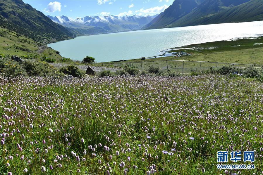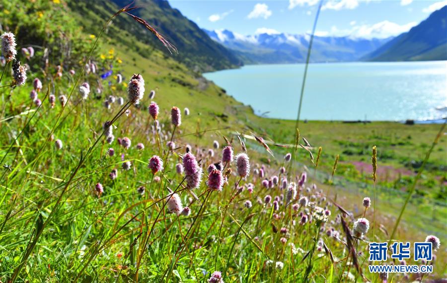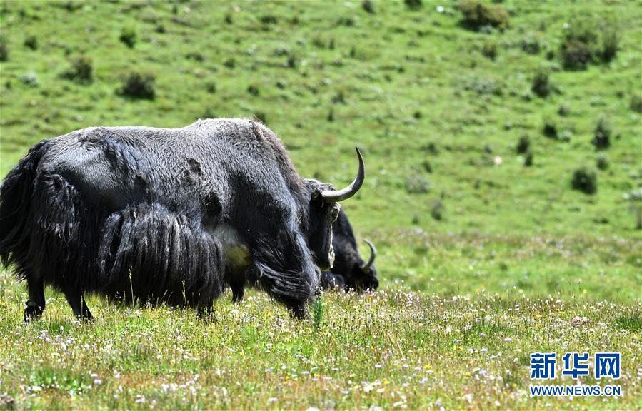 8月15日拍摄的嘉乃玉错湖边的牦牛。 嘉乃玉错国家湿地公园位于西藏自治区那曲市嘉黎县境内。嘉乃玉错湖边铺满鲜花、草木,牛马悠闲觅食。 新华社记者 觉果 摄