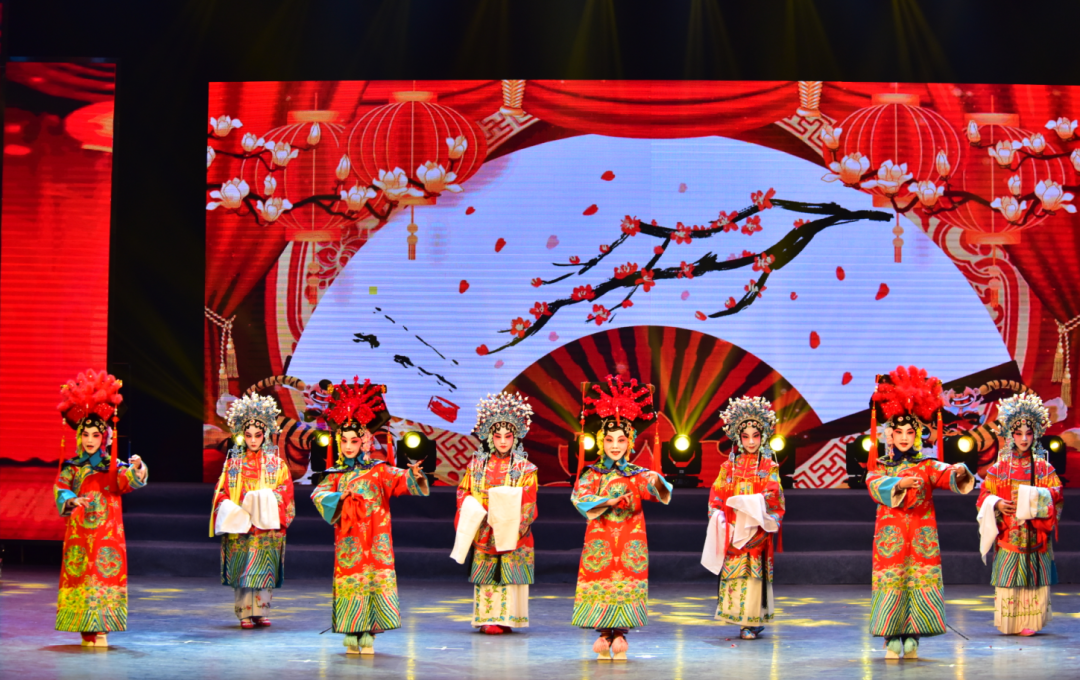 开场传统器乐演奏《韵》恢弘大气;戏曲舞蹈《粉墨花旦》、京剧表演《红娘》、传统京剧《二进宫》《白蛇传》等,精彩纷呈。