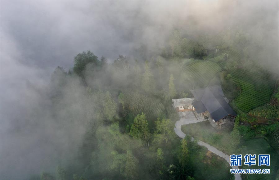 这是8月19日在利川市毛坝镇楠木村拍摄的云海(无人机照片)。 雨后初晴,湖北省恩施土家族苗族自治州利川市毛坝镇楠木村云海涌动,山峰、森林和村庄在云海中若隐若现,美若画卷。 新华社发(杨顺丕 摄)