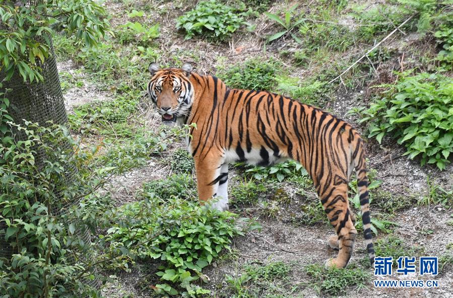 这是8月19日在梅花山“中国虎园”里拍摄的华南虎。 福建梅花山自然保护区是国家级森林和野生动物类型自然保护区。1998年,国家林业部门和福建省龙岩市启动“拯救华南虎工程”,成立华南虎繁育研究所,建立梅花山“中国虎园”,开展华南虎的繁育和散放野化驯养。 近年来,随着梅花山环境质量的持续向好和生物多样性保护的加强,“中国虎园”的华南虎繁育能力不断提高,截至目前已累计繁育成活华南虎51只。 新华社记者林善传摄