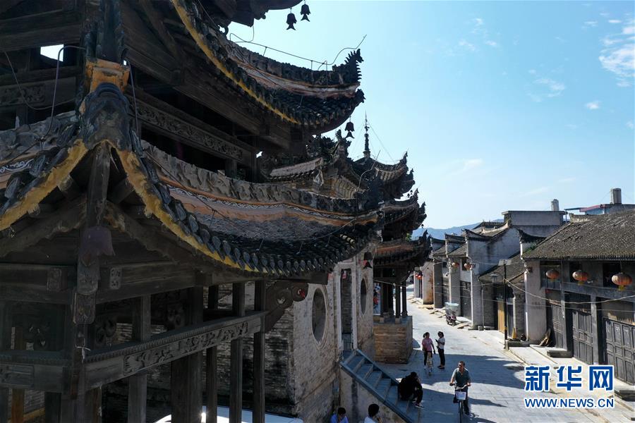 这是8月25日拍摄的河南省南阳市淅川县荆紫关古街(无人机照片)。 河南省南阳市淅川县荆紫关镇地处豫、鄂、陕三省交界处,这里的荆紫关古街现存明清古建筑700余间,是明清时代丹江漕运发达时帮会、商行的落脚之地,建筑形式体现出南北交融的风格,石雕、砖雕、木雕等别具匠心。 2001年,荆紫关古建筑群被国务院公布为第五批全国重点文物保护单位。 新华社记者 冯大鹏 摄