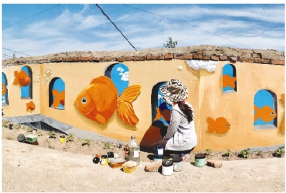 近日,太平湾街道与鲁迅美术学院壁画系学生联手打造的丹东市首个大型“壁画街”一期工程正式面世。壁画墙画面色彩饱满绚丽,充满了生机和活力,表达了人们对美好生活的追求与向往。在老旧围墙上涂鸦美化,生动地展现了太平湾的乡村魅力和文化底蕴,为推动美丽乡村建设涂上了浓重的一笔。