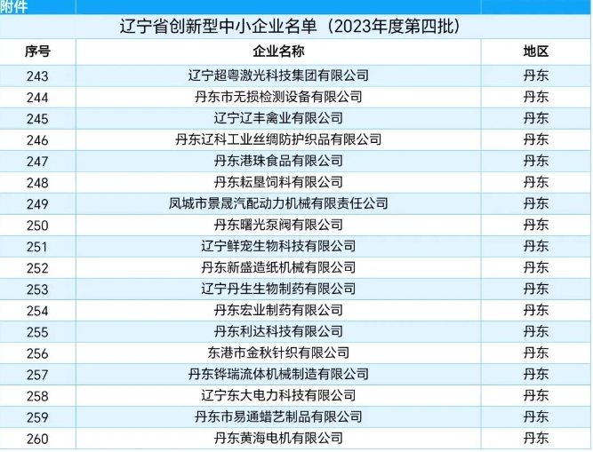 辽宁超粤激光科技集团有限公司等18家丹东企业入选。